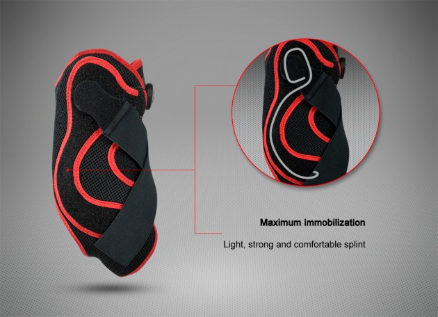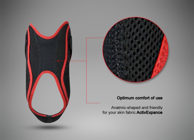 The outside of the device is made of spatial fabric AirDistance III which support lateral stabilizers. The openwork construction allows the skin to breath and improves the comfort of use.