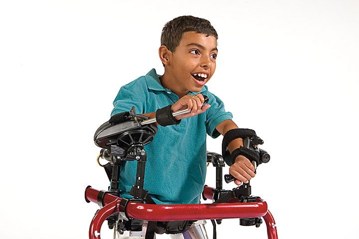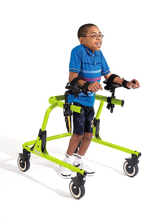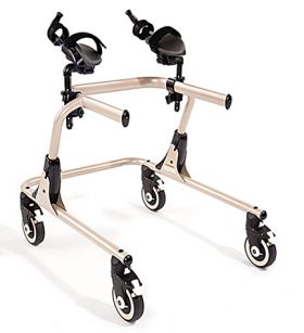- Placed at elbow height aligned with shoulders, arm prompts assist partial weight-bearing gait