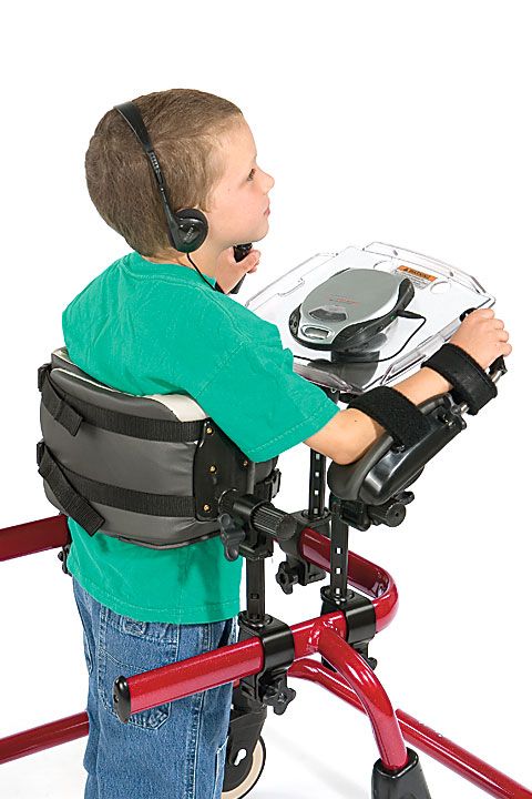 - Angled upward, arm prompts encourage active upper trunk and head control