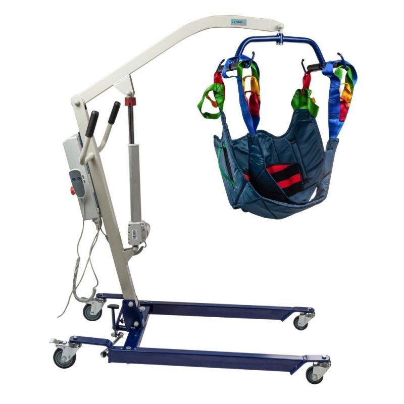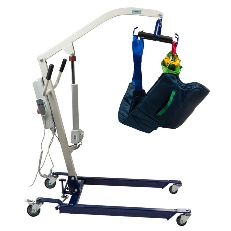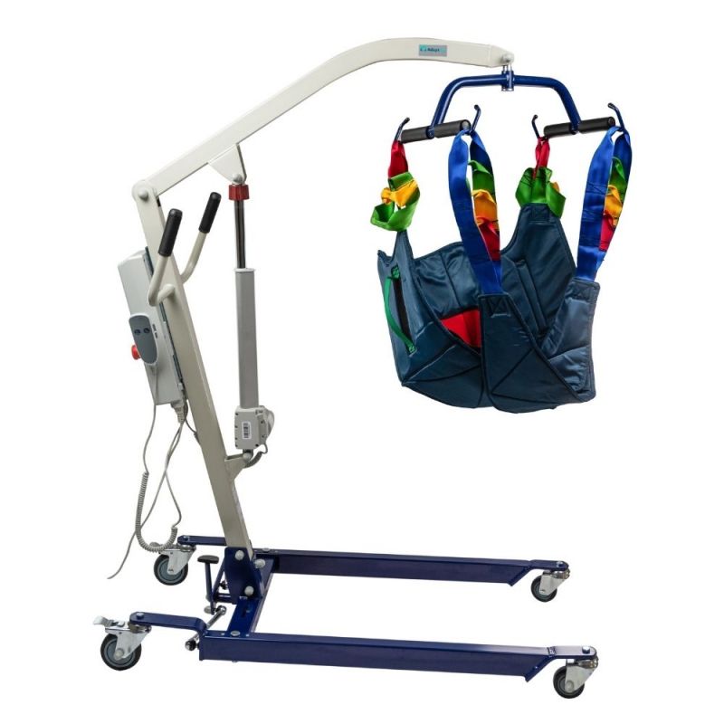 Electric patient lifter with ASTRA bag. The bag is specially made of a material made of durable nylon fabric through a special sewing process and includes four extensible "sling" tips. The ASTRA electric patient lifter is designed primarily for the comfort and safety of users up to 150 kg.