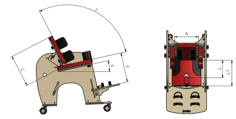 Positioning chair JUMBO™ is used for initial upright standing of children in the sitting position.