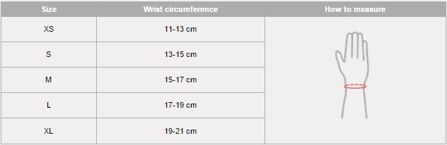 The fitting on the Wrist by three Velcro straps, which ends of closure are provided with Plastic Covers, specially developed for patients with limited dexterity, such as osteoarthritis and wrist instability.