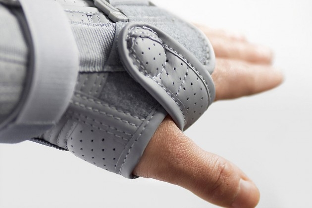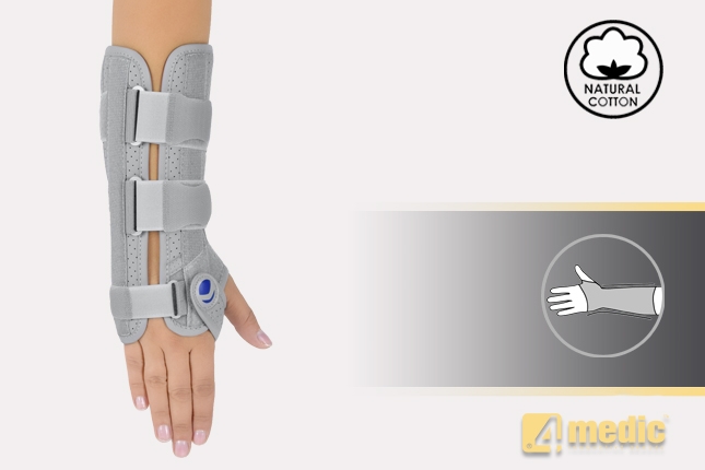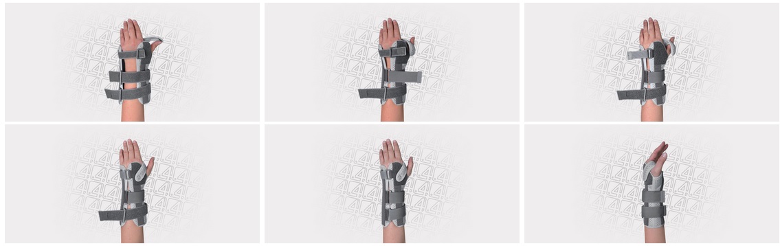 The orthosis is provided with anatomically shaped, malleable and removable metal Strip for Palm (sweat resistant coating).