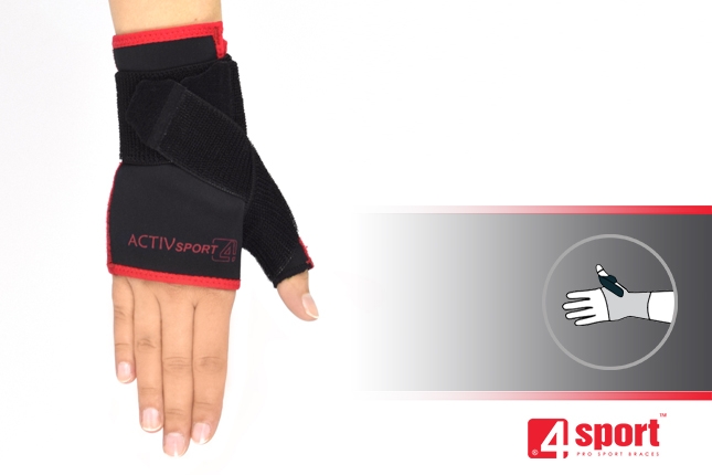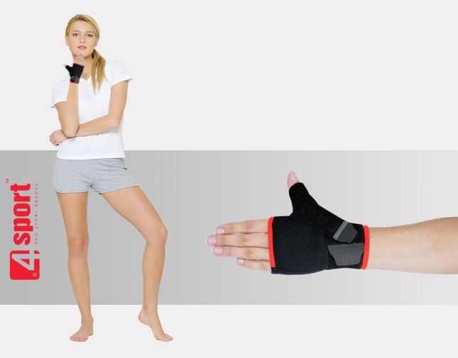 The carpometacarpal joint of the thumb, called saddle joint, is one of the most movable joints in human body. Because of that, it is prone to injuries and conditions. The joint incorporates 5 movement in different planes: abduction and adduction, opposition and retrooposition and circumduction. Sport brace AS-N-02 is created for joint protection. It is made of anatomic glove and equipped with set of elastic straps, which are easy to attach and allow to set thumb in the required position.