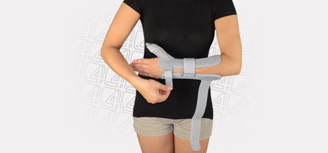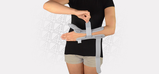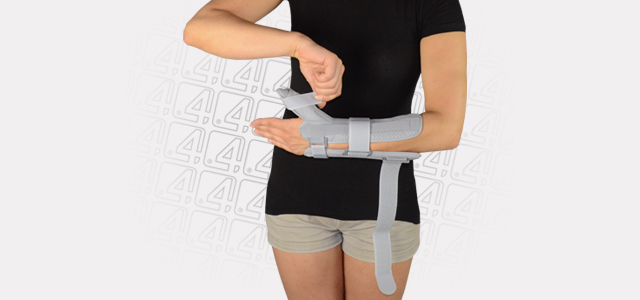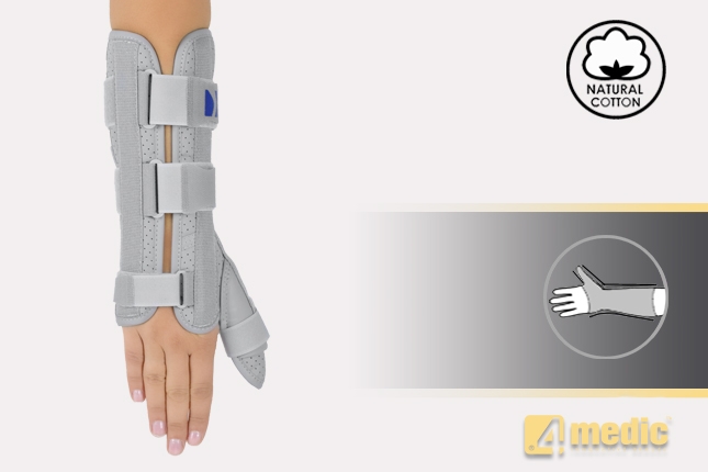 LOCK 3-POINTS Circumferential Compression allowing adequate support and unloading of radiocarpal joints. The orthosis is provided with anatomically shaped, malleable and removable metal Strip for Palm (sweat resistant coating) and 2 Dorsal plastic stays.