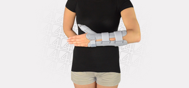 The orthosis with Thumb Abduction System contains an aluminum malleable strip and Velcro straps for adjustment of the thumb abduction.