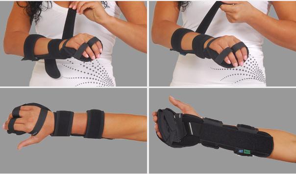 The palmar part of orthosis is equipped with anatomical shaped, malleable and removable forearm and palm strip with sweat-resistant powder coating applied.