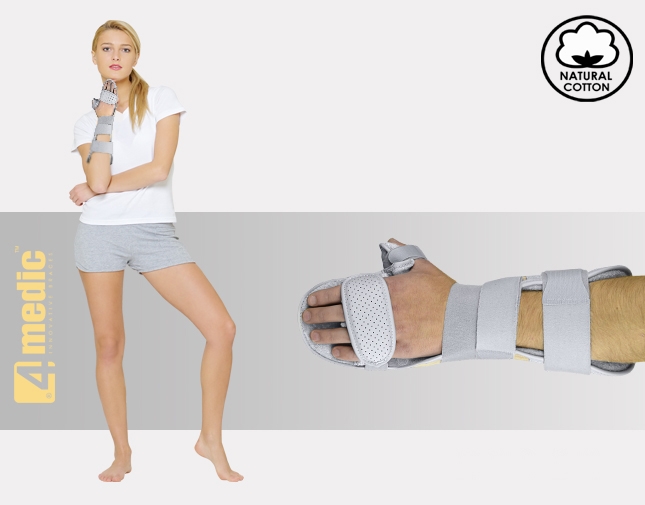 Dorsal band on fingers provides support for phalangeal area. The product is supplied with soft finger separator which prevents to fingers overlapping, anti-spasticity, relieves pain fingers and keep them in correct position.