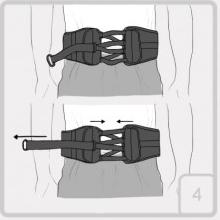 The TLS System is a combination of metal grommets, nylon tapes and Velcros. The additional equipment is the special element that is easy to attach what allows to modify device’s shape or circumference. You can achieve required compression with a single pull strap. One easy pull securely forms the brace to the patient’s torso and provides intra-abdominal compression, reducing the load on intervertebral discs.