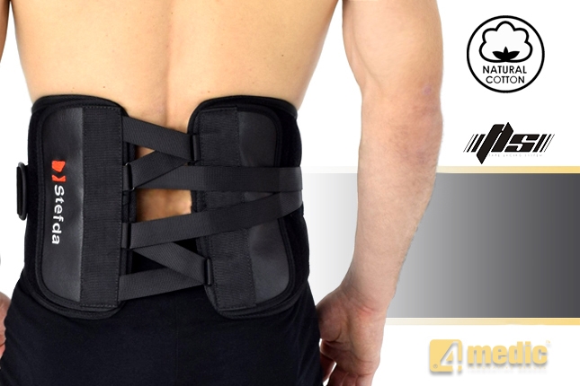 Lumbosacral brace STEFDA helps to relieve the lumbar pain and prevents against muscles cramps. It is made of unique spatial material called ActivExpanse.