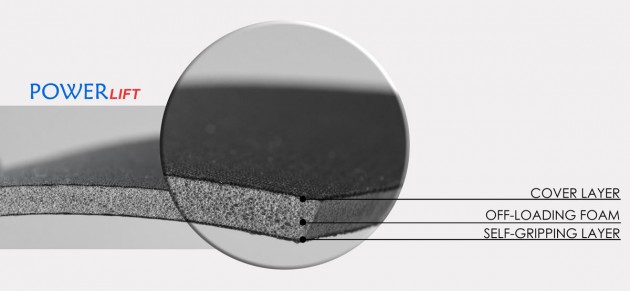 PowerLift is off-loading 3-layered lamination. It consists of: durable polyamide self-gripping part, EVA foam and jersey. PowerLift is easy to attach what improves comfort of use. Waterproof material.