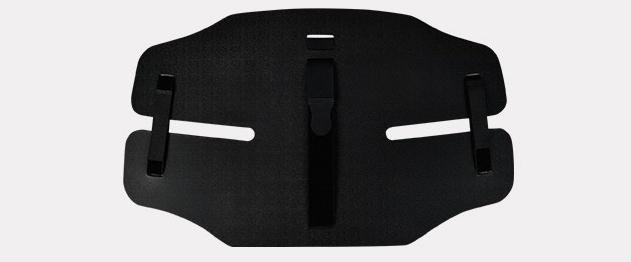 The wide circumferential non-elastic strap is the additional stabilizing element which provides adjustable compression in the lumbosacral spine.
