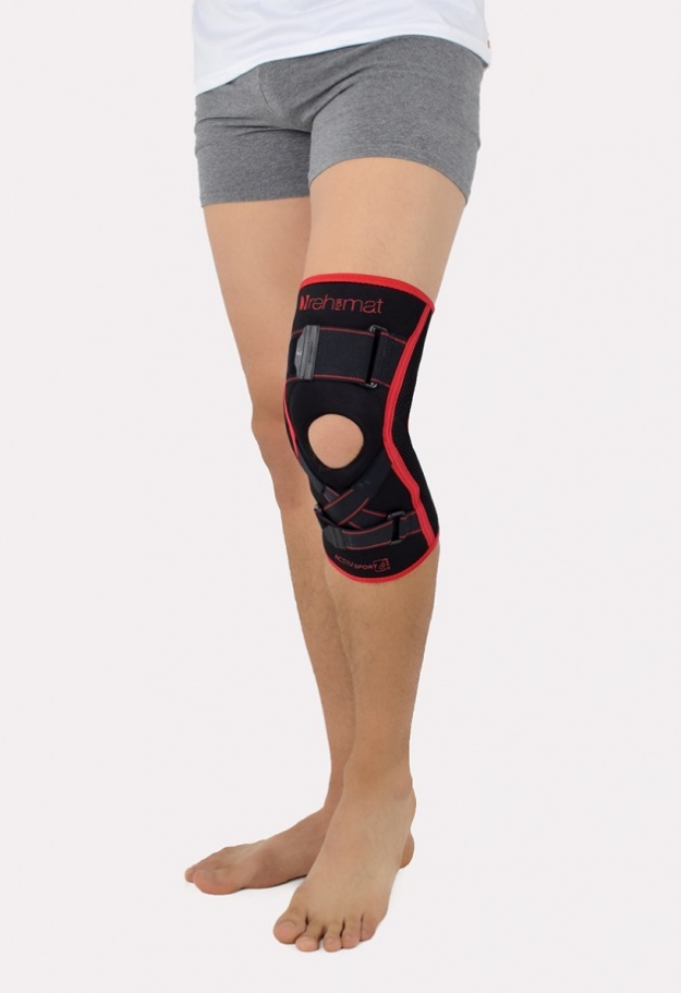The brace, thanks to its orthopaedic stays, stabilizes the knee joint. Furthermore, it supports the muscles insertions and has analgesic properties by stable compression. The design of the fabric enables use of the support even in extreme conditions e.g. sport activities.