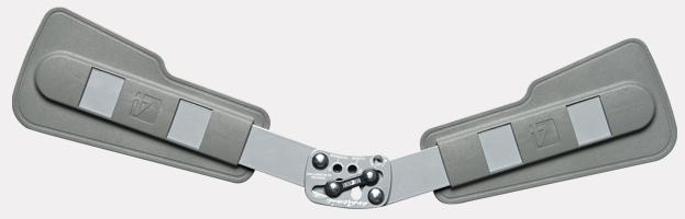 Splints 2RA are a double axis anatomic splints which reflect the knee movement and during performance do not change their position towards the joint axis. Splints 2RA are double axis polycentric splints, with coupling mechanism with two main conductive elements which move of parabolic tracks. Such splints are mainly used in all knee joint braces and, apart from angle adjustment, the high lateral knee stabilization is very important. The splints are manufactured with high quality of sanded aluminium, durable cover which what makes splints neutral to the influence of sweat and salt. Flexion and extension angle adjustment is possible with special allen screws. Every brace is equipped with special Allen key which is necessary for adjustment. Anatomic splints provides hyperextension block in 15° extension in 75° and immobilization possibility. The angle adjustment clock is secured from manipulation by unauthorized people. Standard length of the splints is: 290 and 390 mm. The splint and its design are patented in European Union by Reh4Mat company.