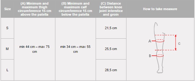 - Two open sleeves – for the thigh and shin part- enabling their easy installation and exact adjustment to sizes of bottom limb’s measurements.