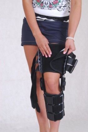 - as an postoperative immobilizer and support in rehabilitation during knee surgeries after sudden injures (internal joint fractures, ligament reconstructions) or after conditions (partly or full alloplasticity)