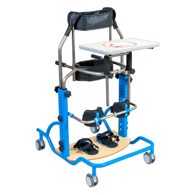 The PARAPION is a static standing frame suited for patients who need adpot a proper standing postition. This special needs standing frame allows the patient to assume a full and safe upright standing. Its stable construction, ergonomic knee supports, wide pelvic and chest belts are the basic elements ensuring safety and comfort during the therapy. When the patient is placed in the device, they are able to perform rehabilitation treatment as well as simple domestic or professional activities. The PARAPION standing frame also is equipped with four noiseless castors which enable easy relocation of the patient when required.