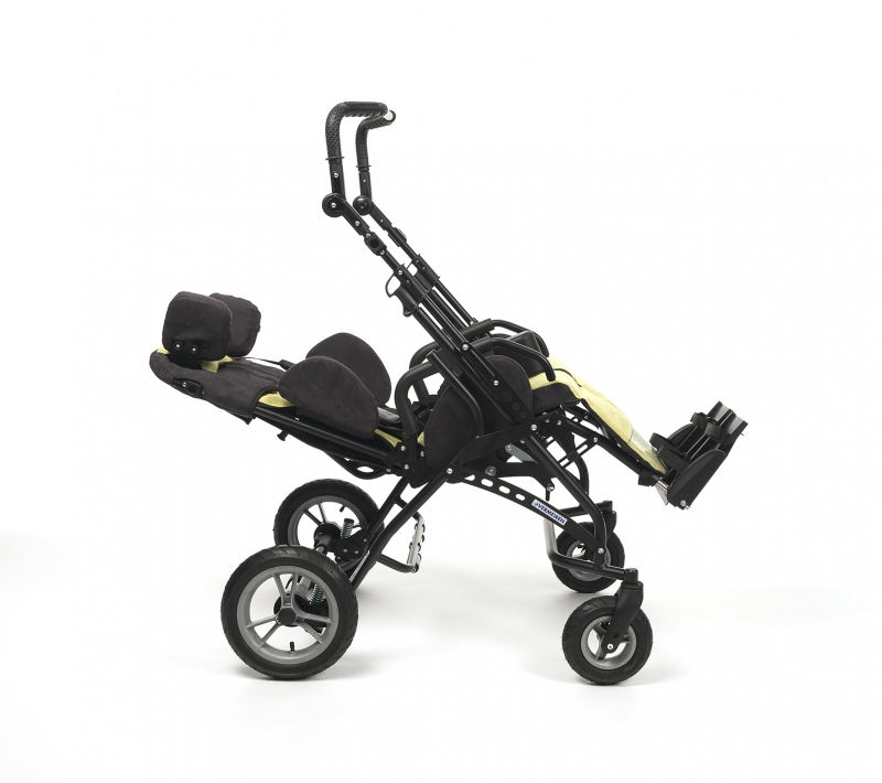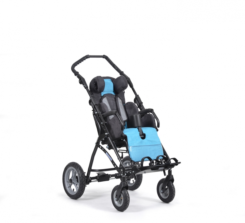 The GEMINI is a multi-functional stroller for children with special needs. This aluminum Reha buggy is designed sturdy, safe and comfortable, boasting a 5-point security belt, spreader and head support - all included in the standard version. The Vermeiren GEMINI is the perfect buggy for parents who are looking for the best possible combination between functionality, quality design and lightweight a special needs stroller.